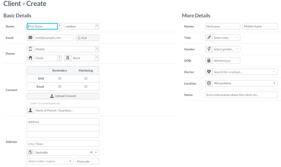 Enter patient details → Create Client![]() |